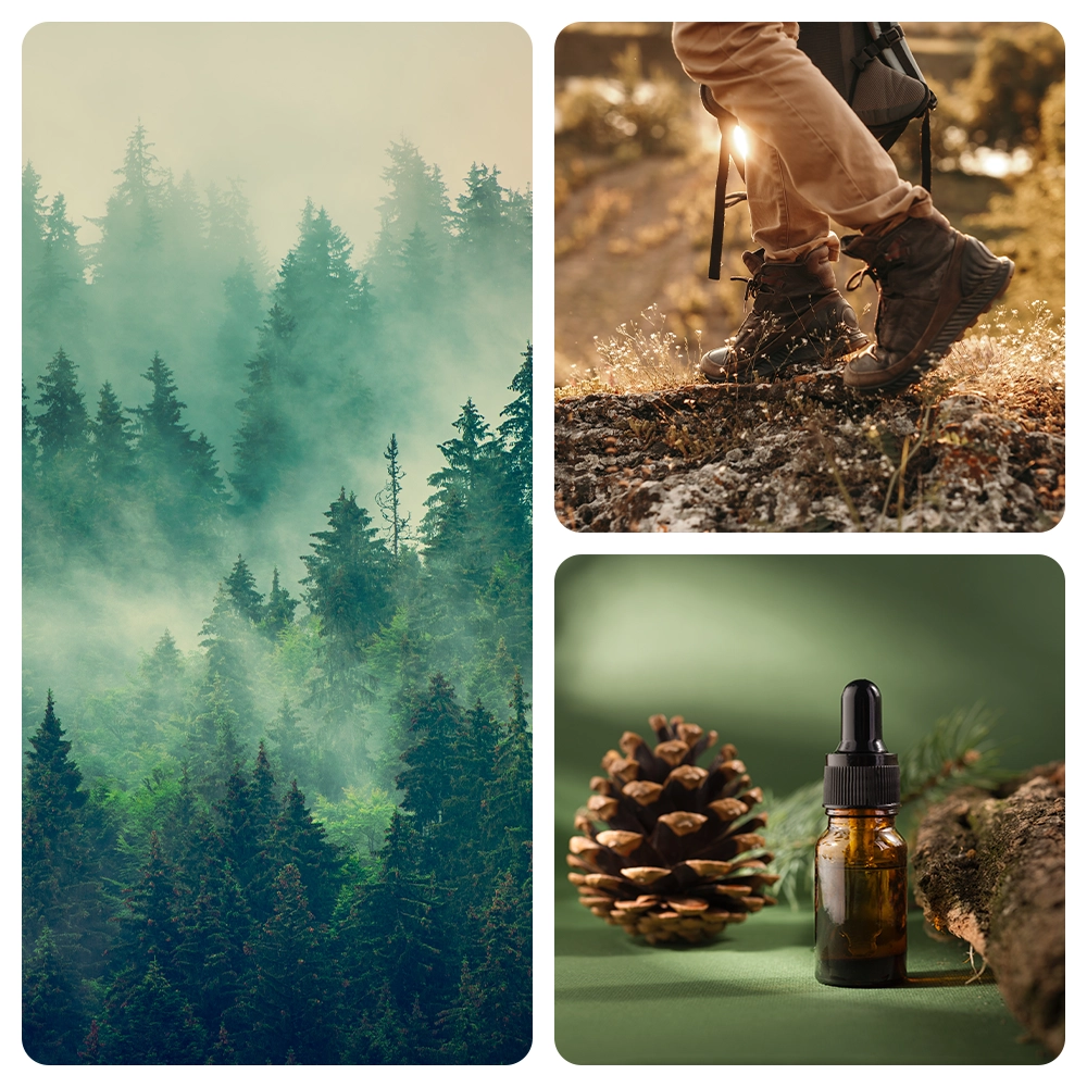 Nadelwald entfaltet einen einzigartigen Duft: Die Kopfnoten von Kiefer, Eukalyptus und grünen Noten vermitteln eine erfrischende Brise. Im Herzen dominiert die Kiefer, während die Basisnoten von Kiefer, Zedernholz, Sandelholz und Guajakholz eine warme, holzige Tiefe hinzufügen. Diese Komposition schafft eine Atmosphäre, die an einen majestätischen Nadelwald erinnert – belebend, gleichzeitig beruhigend und von natürlicher Eleganz geprägt.