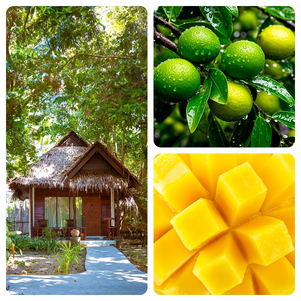 Thai Limette & Mango verführt mit einer exotischen Duftkombination, die frische Limetten mit saftiger Mango vereint. Der erfrischende Zitrusduft der Limetten tanzt elegant mit der süßen, tropischen Note der Mango. Ein sinnlicher Hauch von Thailand in jedem Atemzug – ein olfaktorisches Abenteuer, das die Sinne belebt.